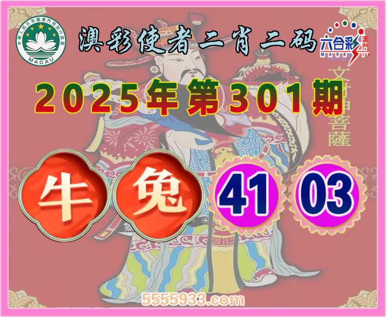 301期:【澳彩使者】 二肖二码兔】【41.03】开:牛05