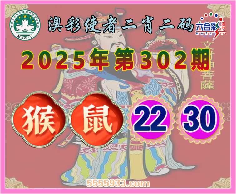 302期:【澳彩使者】 二肖二码鼠】【22.30】开:猴22