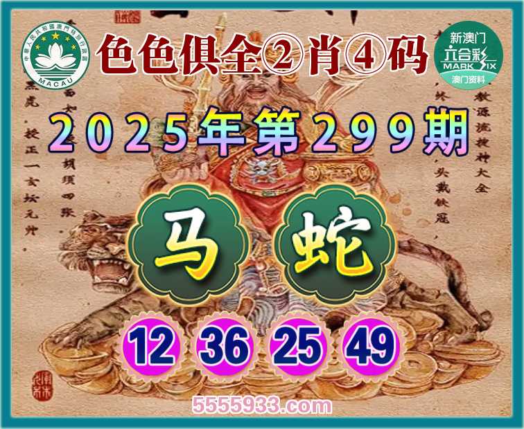 299期:〖色色俱全〗 ②肖④码【马】【12.36.25.49】开:蛇49