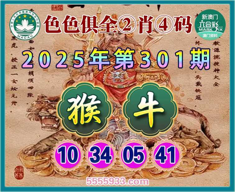 301期:〖色色俱全〗 ②肖④码【猴】【10.34.05.41】开:牛05