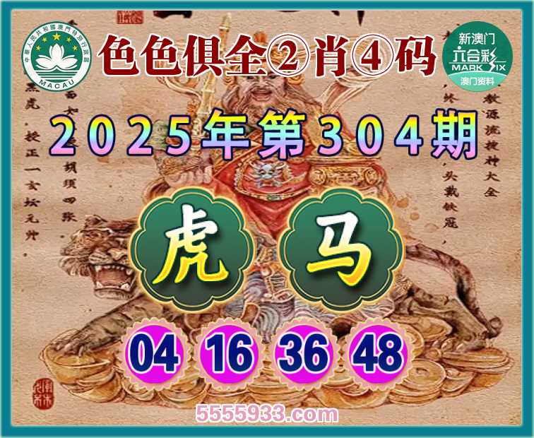 304期:〖色色俱全〗 ②肖④码【虎】【04.16.36.48】开:马48