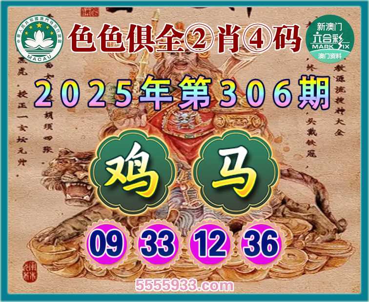 306期:〖色色俱全〗 ②肖④码【鸡马】【09.33.12.36】开:牛17